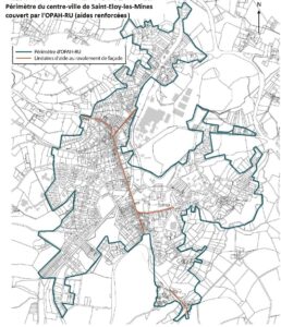 Des aides, attribuées par l’Agence nationale de l’habitat, la communauté de communes et la ville, restent mobilisables pour les logements situés dans le centre-ville de Saint-Éloy-les-Mines (voir carte ci-dessous).